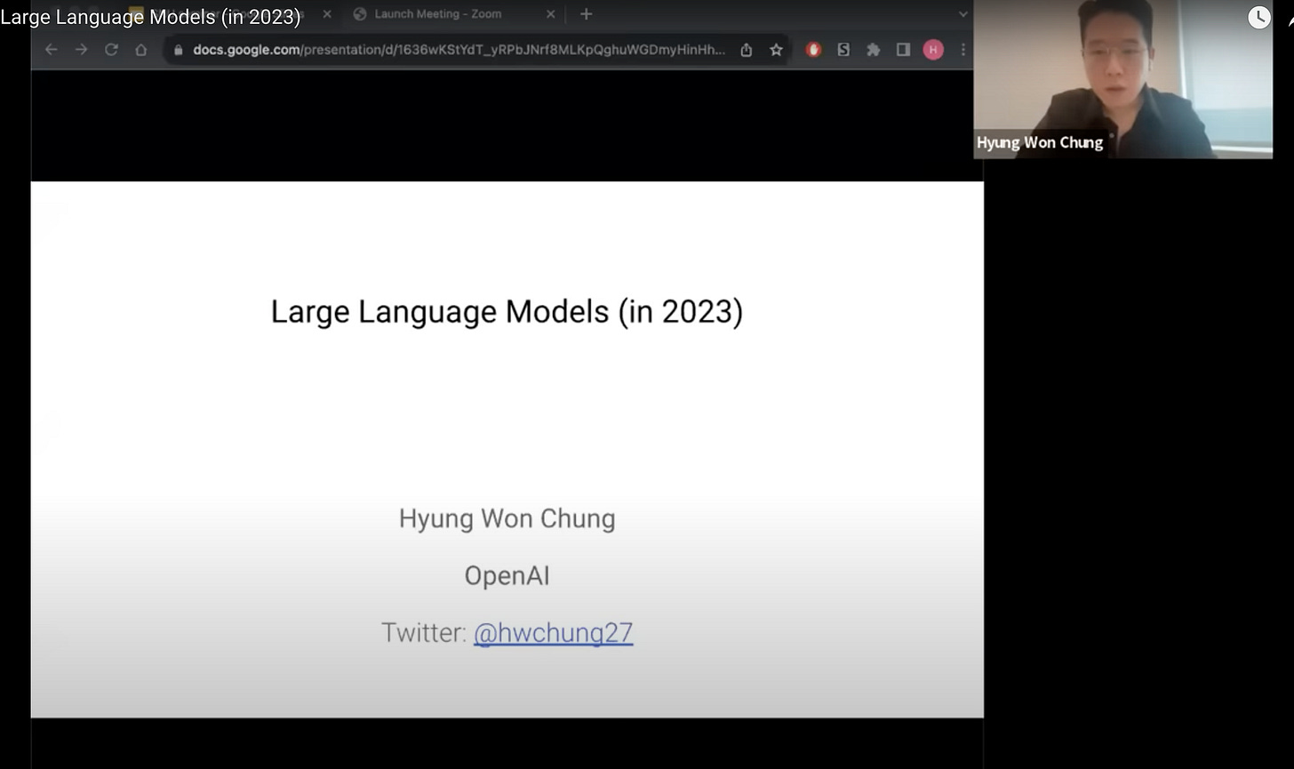 A very good video on “Large Language Models in 2023” by Hyung Won Chung of OpenAI.